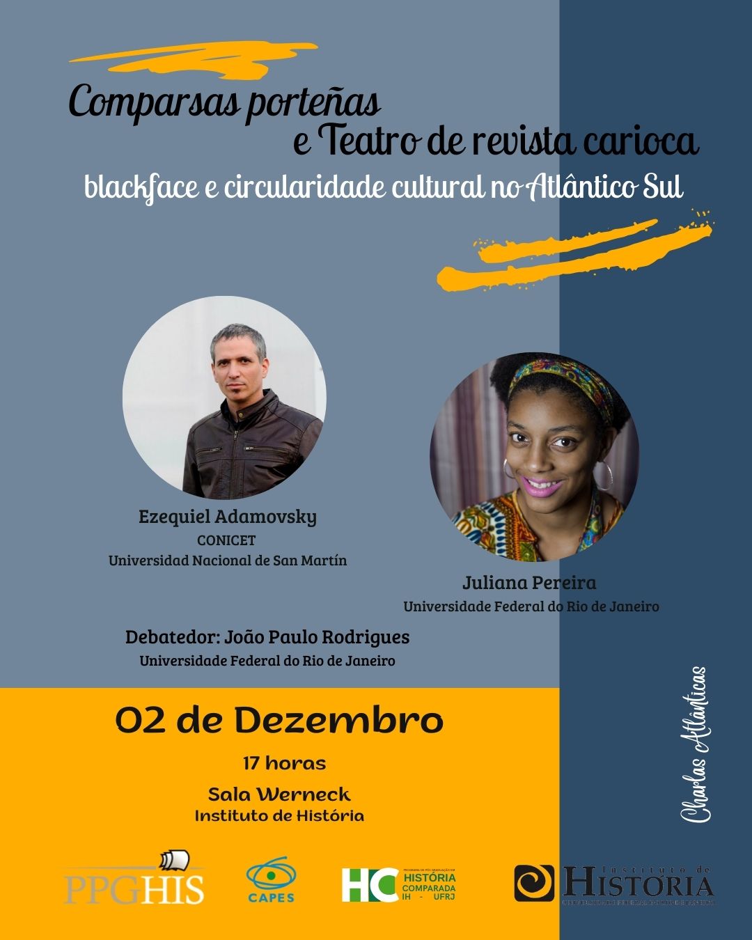 Palestrantes: Ezequiel Adamovsky e Juliana Pereira. Debatedor: João Paulo Rodrigues. Organização de Gabriel Aladrén, no âmbito do Programa Move La América | Capes